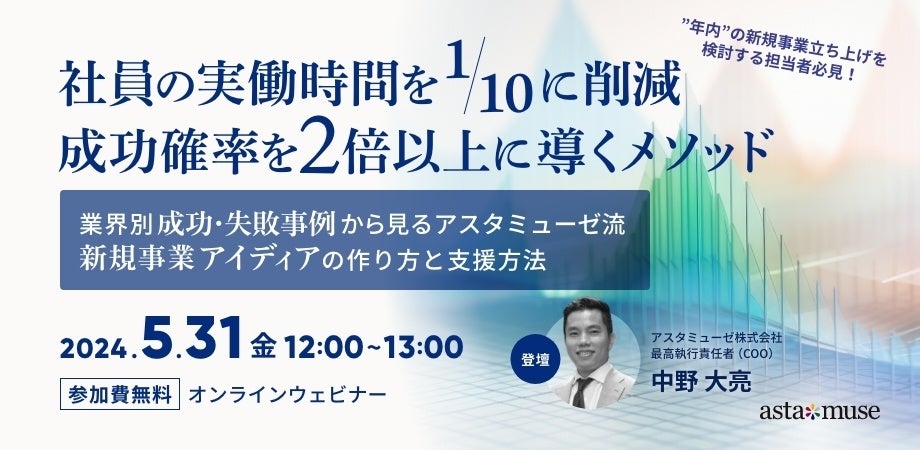 経営企画・新規事業担当者向け無料ウェビナー「工数を1/10に削減し、成功確率を2倍以上に導くメソッド~業界別成功・失敗事例から見る、アスタミューゼ流新規事業アイディアの作り方と支援方法~ 」を開催