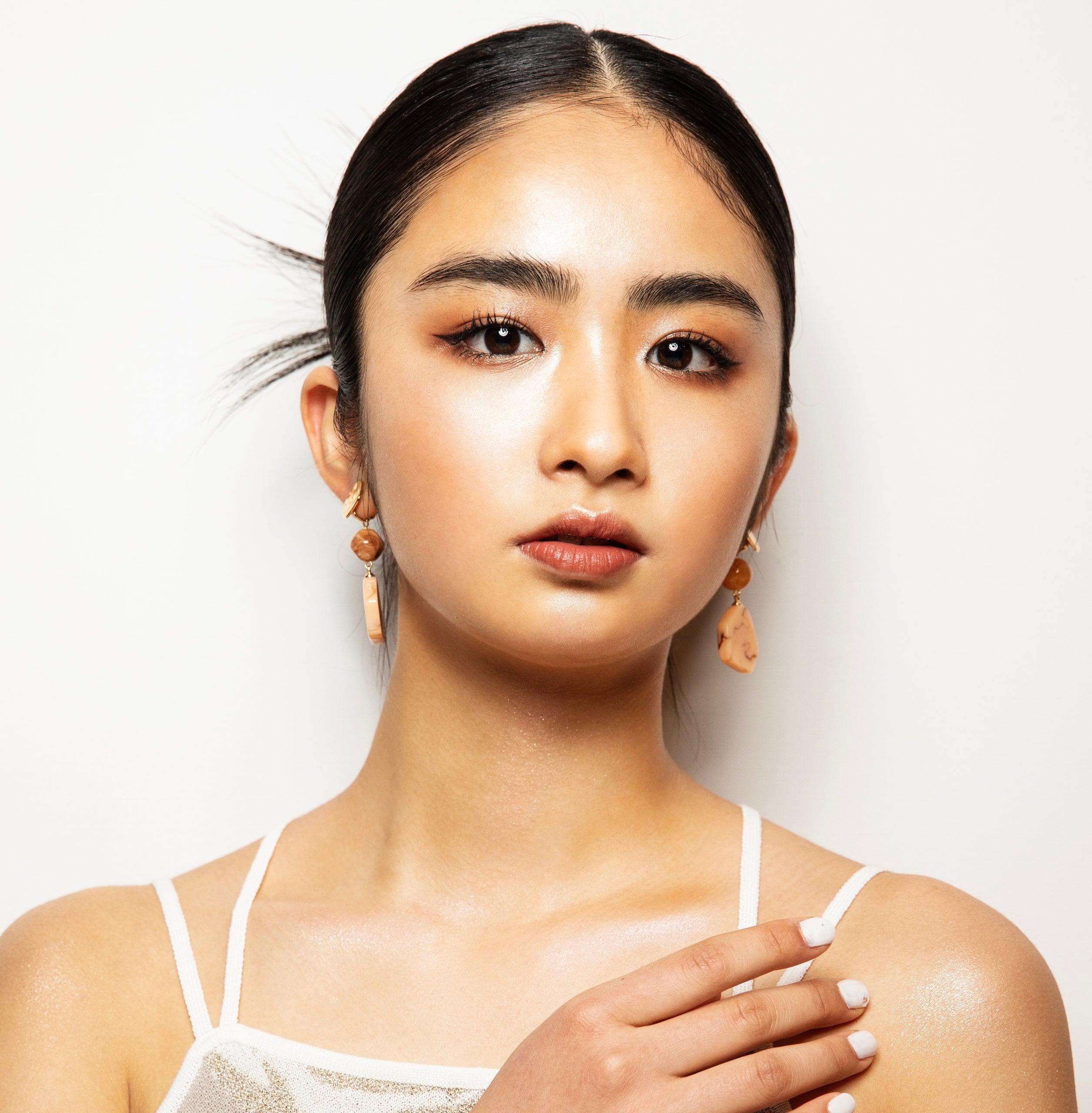 今季は、トレンドのグリッターを使ったハイライトテクニックで女性らしい立体感メイクを楽しみましょう!まず下地にマットなブラウンでシェーディングを施し、次にハイライトとしてパールをオン。凹凸を滑らかにします。そして、最後にグリッターを乗せてメリハリをつけましょう。シェーディングを濃く入れると過剰になりがちなので要注意!さらに、新しいアプローチとして同じパールのハイライトをボディにも乗せてみて!鎖骨や肩など、骨格の硬い箇所に施し、ボディを賛美していきましょう!