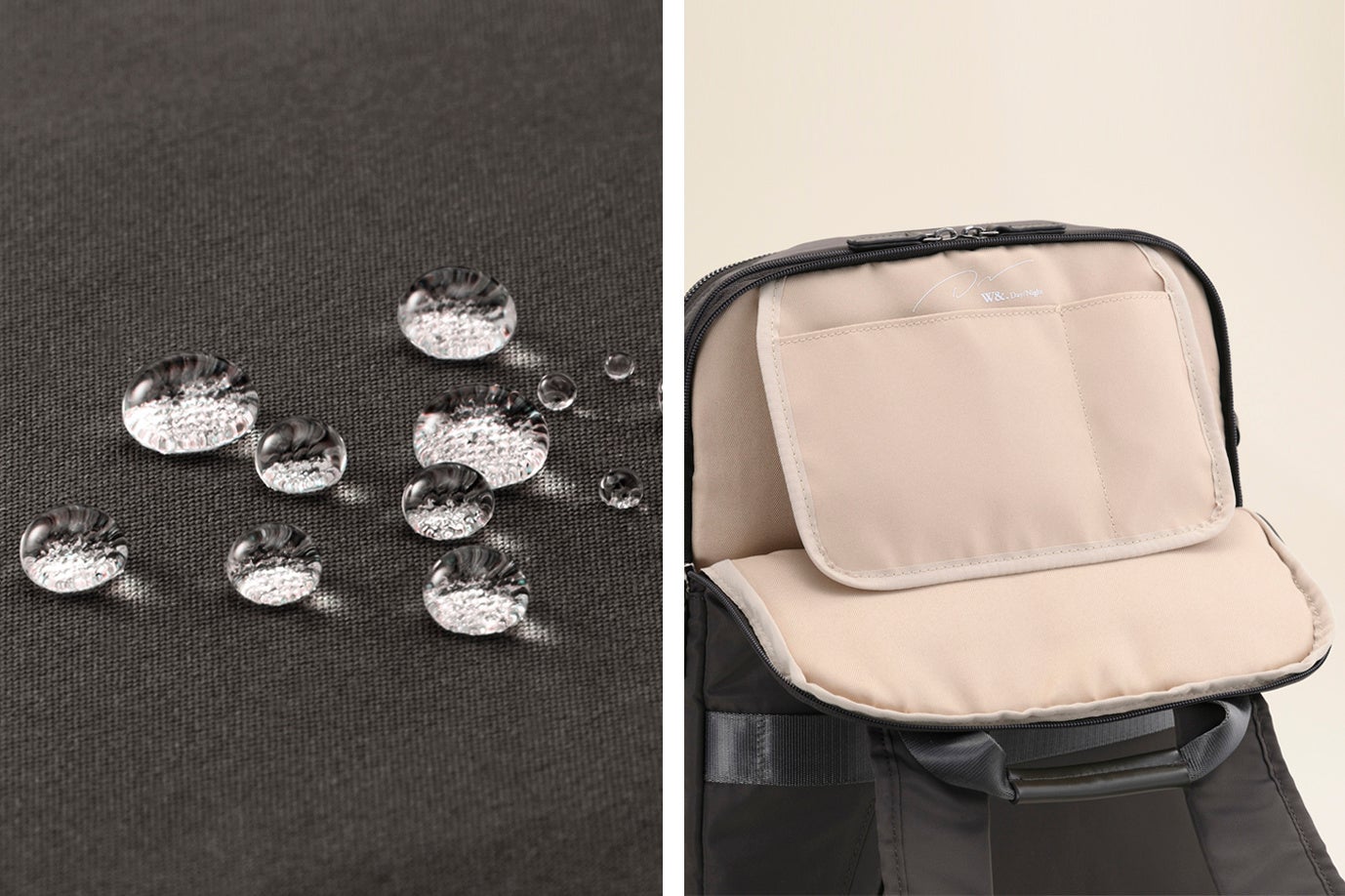 雨にめげない「撥水加工生地」&「雨除けフラップ」
