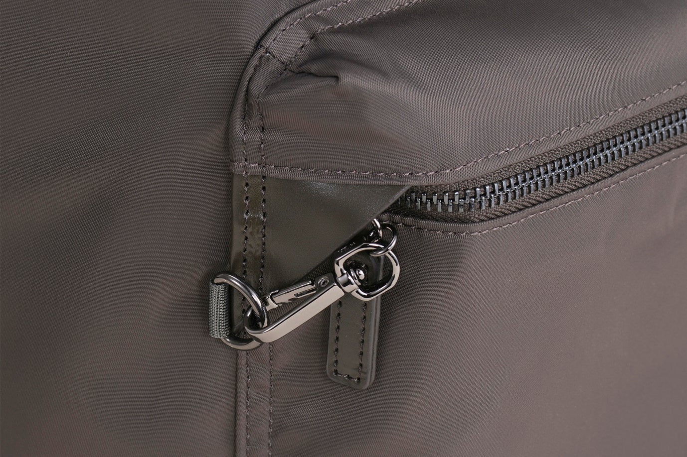 フロントポケットに「セキュリティフック」付き。混雑した場所で防犯に役立つほか、自転車の後ろに乗せた子供が不用意にポケットを開けてしまうことを防ぎます。
