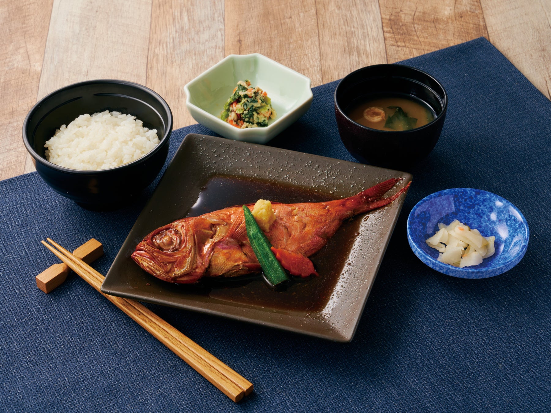 宮城または青森で水揚げされた、厳選した金目鯛をまるごと調理。くずさないよう、じっくり丁寧に煮つけました。しっとりとした身と、御飯やお酒が進むコクのある煮汁が自慢です。