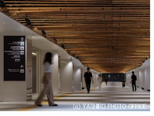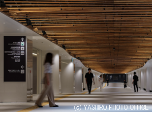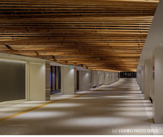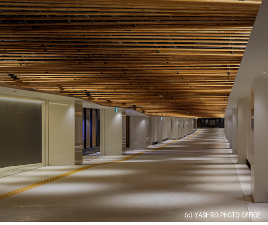 不燃化県産杉材や自動調光制御照明などの最新技術を活用した地下通路