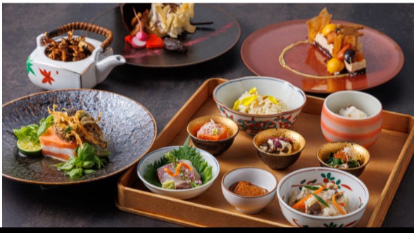 お食事は、和とフレンチの融合を楽しめるこの日限りのコース。秋の味覚をふんだんに盛り込んだメニューをご用意いたします。