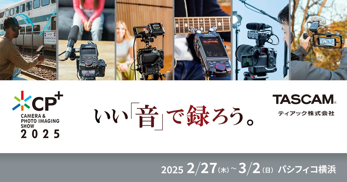 TASCAM(タスカム)は、2025年2月27日 (木)から3月2日 (日) にかけてパシフィコ横浜(神奈川県)で開催されるカメラと写真映像のワールドプレミアショー『CP+ (シーピープラス) 2025』に出展します。
