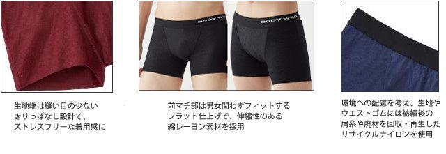 「BODY WILD」は1998年のデビュー以来、快適な着心地を追求し続けてアンダーウェアの新しいスタイルを生み出してきました。新たに発売した「ジェンダーニュートラル」コンセプトでは、さまざまな方に「BODY WILD」の着用感をお楽しみいただけるユニセックスなTシャツとボクサーパンツをラインアップ。ボクサーパンツの前マチ部は男女問わずフィットするフラット設計で、伸縮性のある素材を採用。裾部分の生地端もきりっぱなし設計でストレスフリーな着用感に仕上げました。上質感のあるラッセルレースタイプはコンパクトボクサーとセミロングボクサー、豊富なカラーリングのプレーンタイプのセミロングボクサーをラインアップ。ジェンダーの枠を超えて自由に楽しめる新しいボクサーパンツです。また、Tシャツは襟の後ろを高くした設計でジャケットスタイルのインナーに最適なビジネスユースと、トレンドのオーバーサイズのボックスシルエットで仕上げたタウンユースタイプの2タイプで、オン、オフのファッション、着回しに便利なアイテムを揃えました。
