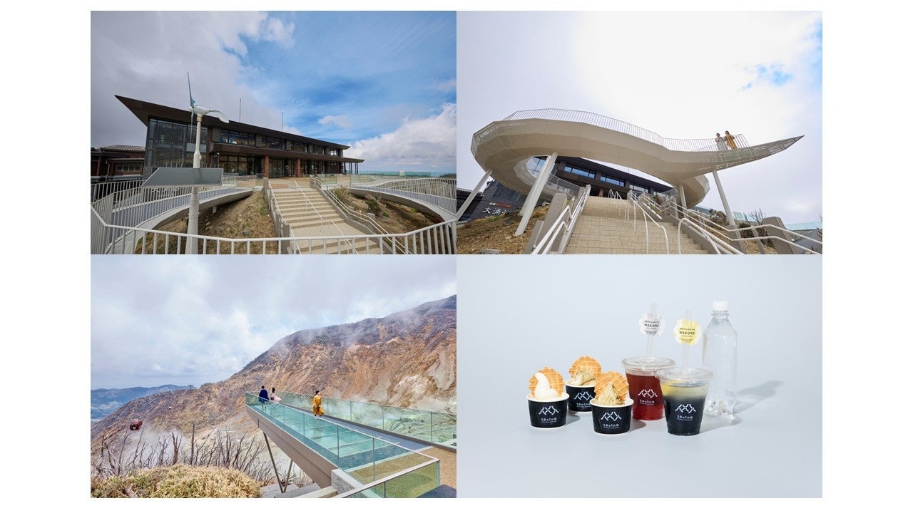 2025 年 4 月 25 日(金)、箱根ロープウェイ大涌谷駅前広場にオープンしました。谷に吹き込む風を感じる「風の輪テラス」、噴気を見下ろす谷へ突き出した「息吹のデッキ」、開放感ある景色を見渡せる「大空のほとり」の個性的な3つの展望デッキや、大涌谷を楽しむ軽飲食や物販を展開する「谷のマルシェ」で構成しています。ダイナミックな地形や風など雄大な自然との触れ合いを楽しんでいただく絶景の舞台になっています。