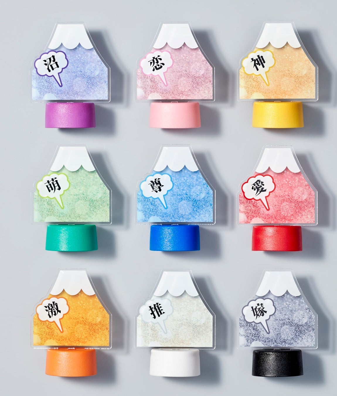 推しボトルチェーン(6 種)やフジサン推しボトルキャップ(9 種)で 推し活も一緒に楽しめます。