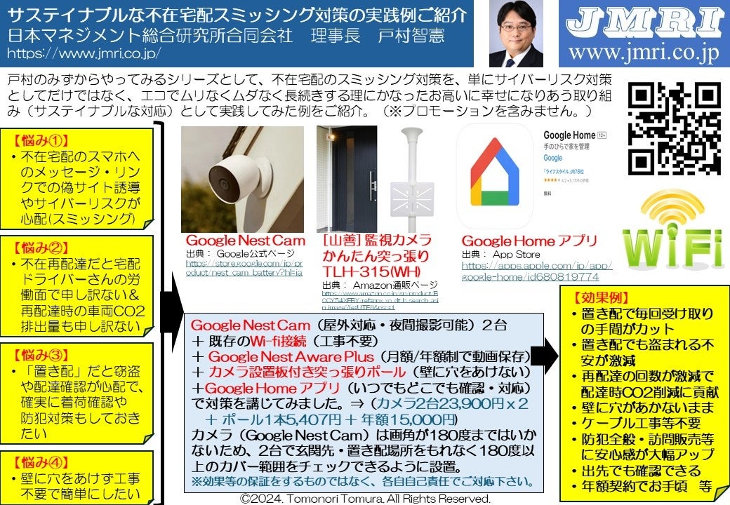 不在宅配通知スミッシング対策:自宅で1人ですぐできる!工事不要でサステイナブルな「そもそも不在通知を開かなくて済む対策」の実践例をご紹介(by戸村智憲)【日本マネジメント総合研究所合同会社】