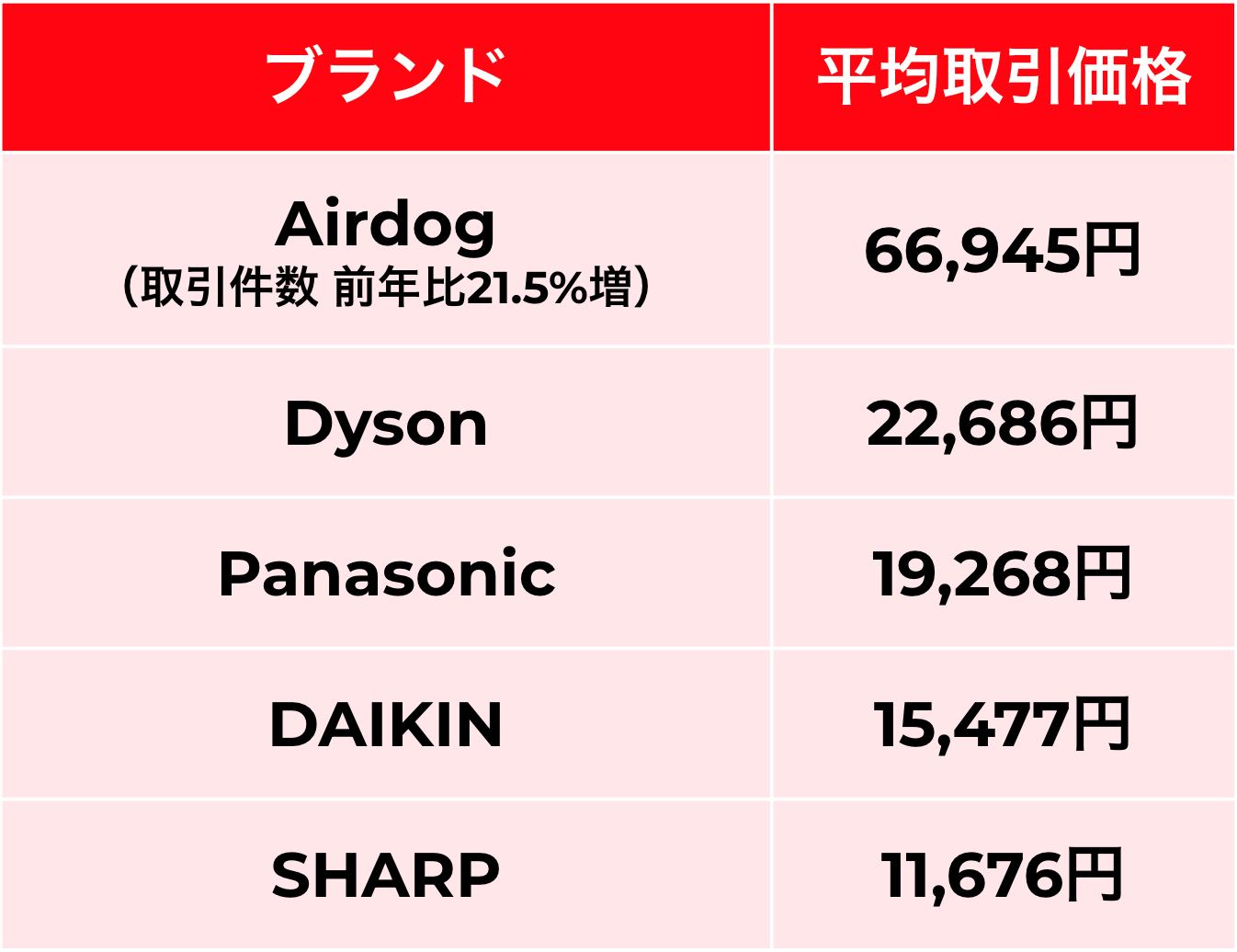 1. 空気清浄機の主要ブランド別 平均取引価格データ公開