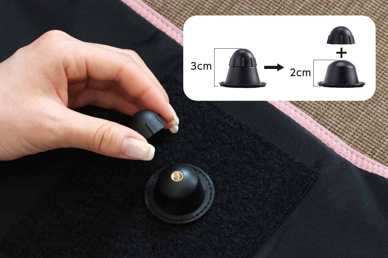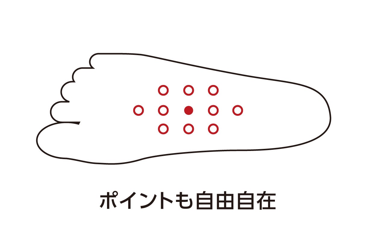本製品は面ファスナーの上にひとつきパーツをつけ、エアバッグで押しあげることで足裏をケアできます。面ファスナーの上にご自身でケアする場所を選べるほか、ひとつきパーツの高さは2cmと3cmから選択できます。