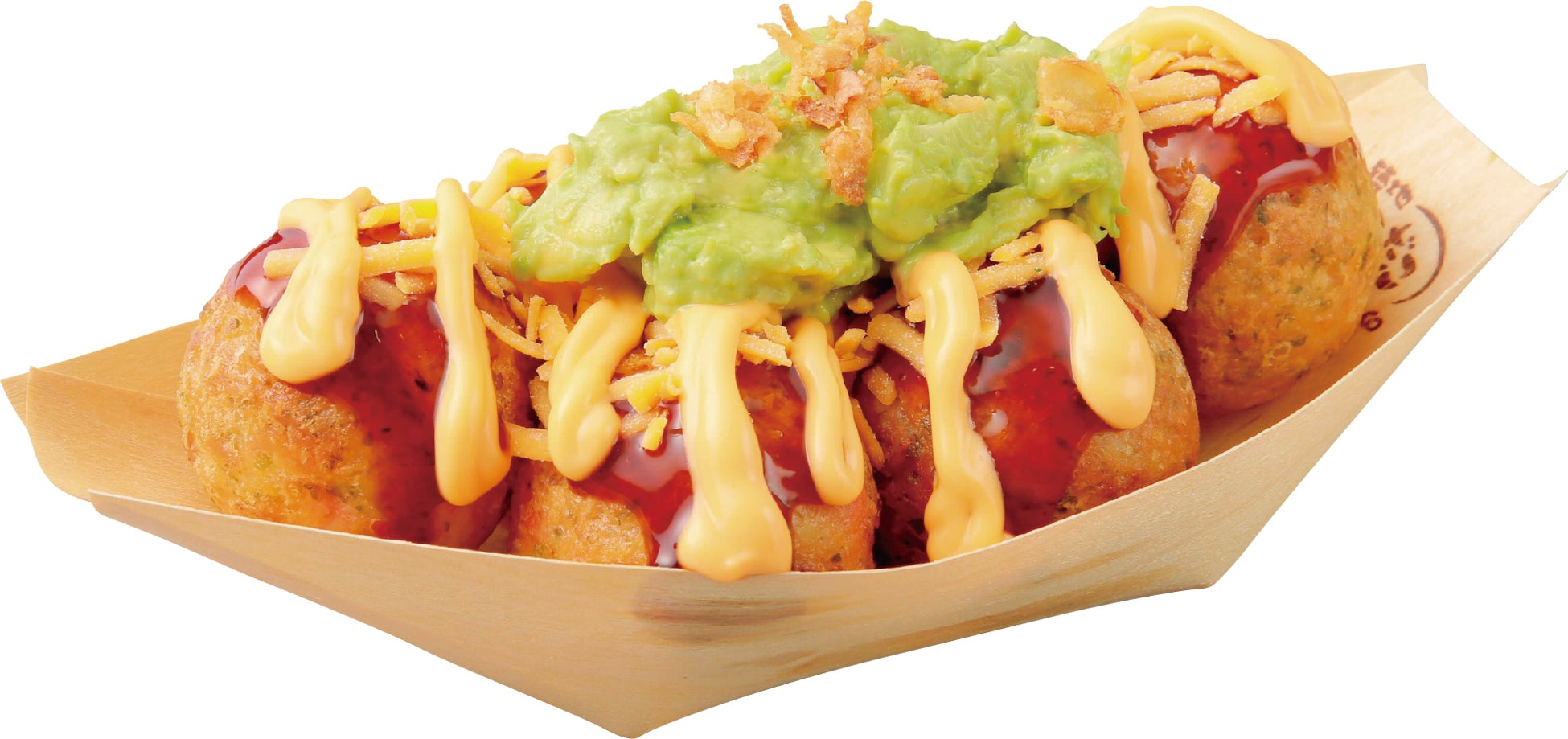 また、2024年に大好評を博した『チーズ&ワカモレ』が、期間・数量限定で復活販売!本商品の最大の特徴は、メキシコ産を中心に厳選したアボカドとシャキシャキの玉ねぎ等を店内で混ぜ合わせ、素材の味や風味を活かして仕上げた “ワカモレ”※ です。あつあつのたこ焼に、醤油ベースの和風ソースをのせ、マイルドでコクのある “2種(シュレッド・ソース)のチェダーチーズ” をトッピングし、店内仕込みの “ワカモレ” をたっぷり乗せ、フライドオニオンを加え仕上げた商品は、今までの国内新商品では味わえない、南カリフォルニア・ロサンゼルスの雰囲気を感じられる自信作です。