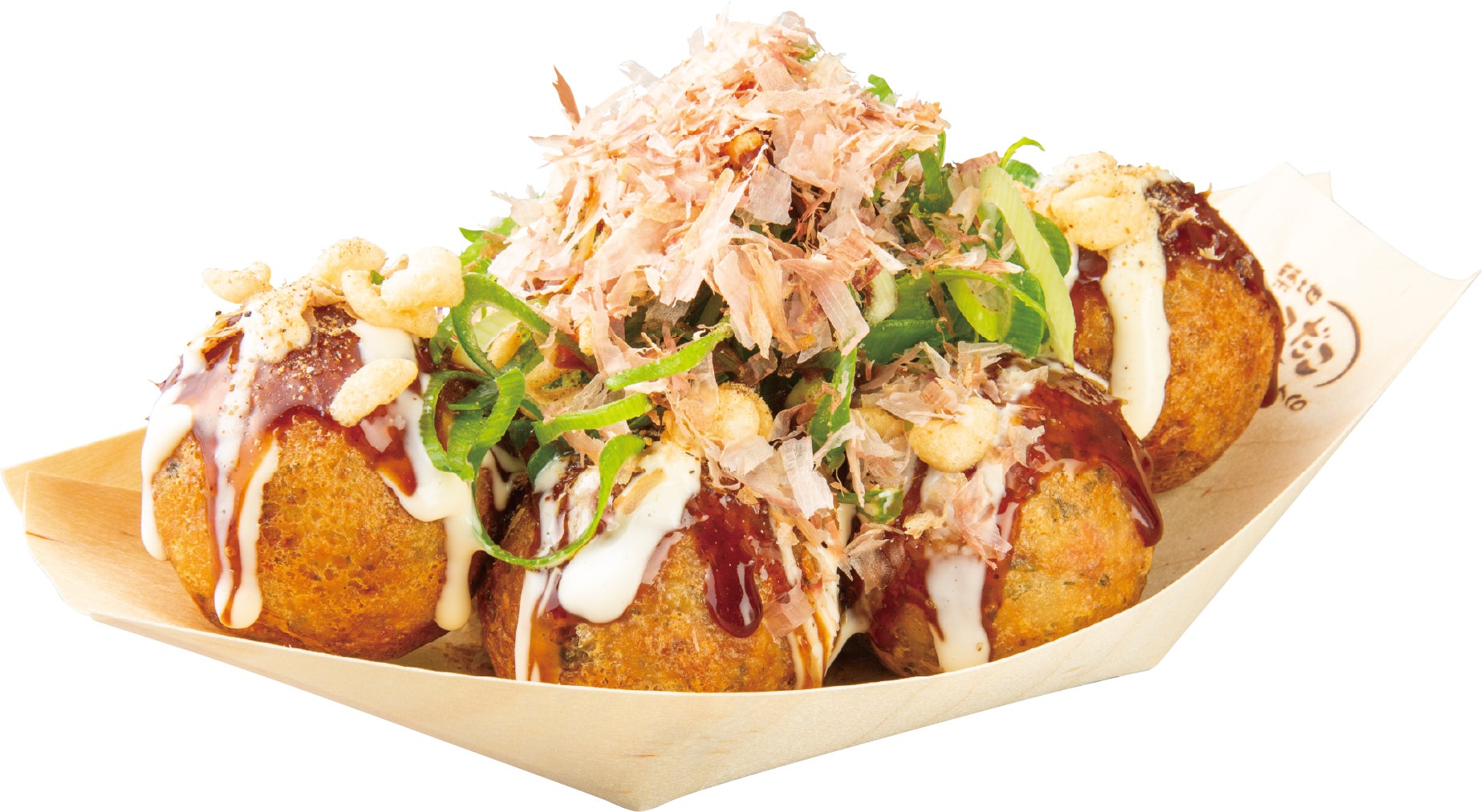 さらに、上からトッピングする特製の “イカ天かす” と “焼きあごだし粉” が、香ばしさと深い味わいを演出。最後に、小袋で別添えのかつお節は、今回の 『濃厚魚介系 UMAMI たこ焼』 のために厳選しており、こだわりの鹿児島産のかつお節で香り高い旨味が味わえます。