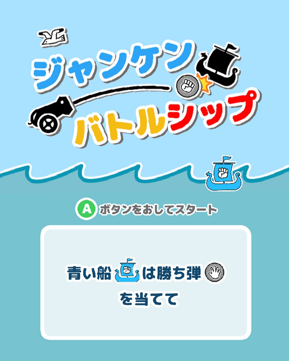 作品概要:だれでも知っているジャンケンをテーマに、何度でも遊びたくなるようなゲームを目指して作りました。青い船には勝ちになる弾を、黄色い船にはあいことなる弾を、赤い船には負けになる弾を当てると、得点をゲットできます。ただし、カモメに2回当ててしまうとゲームオーバーになってしまうので気をつけてください。お友だちと競い合ったり、自分の最高得点を目指したり、楽しんで遊んでいただけたら嬉しいです!