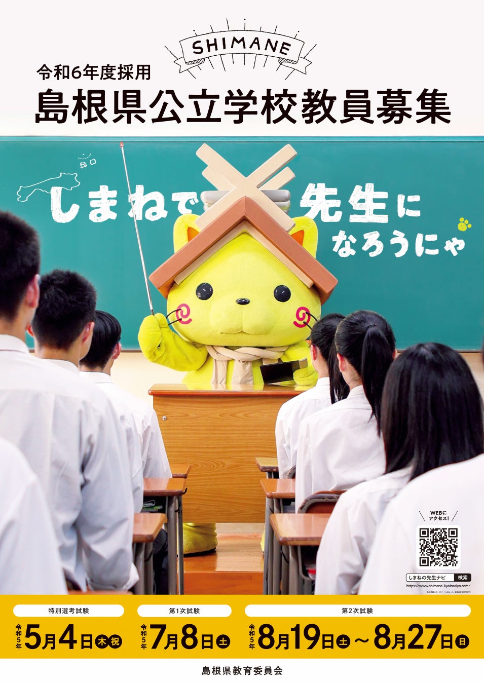 https://www.pref.shimane.lg.jp/admin/syokuin/saiyou/saiyou_info_tchr/index.html