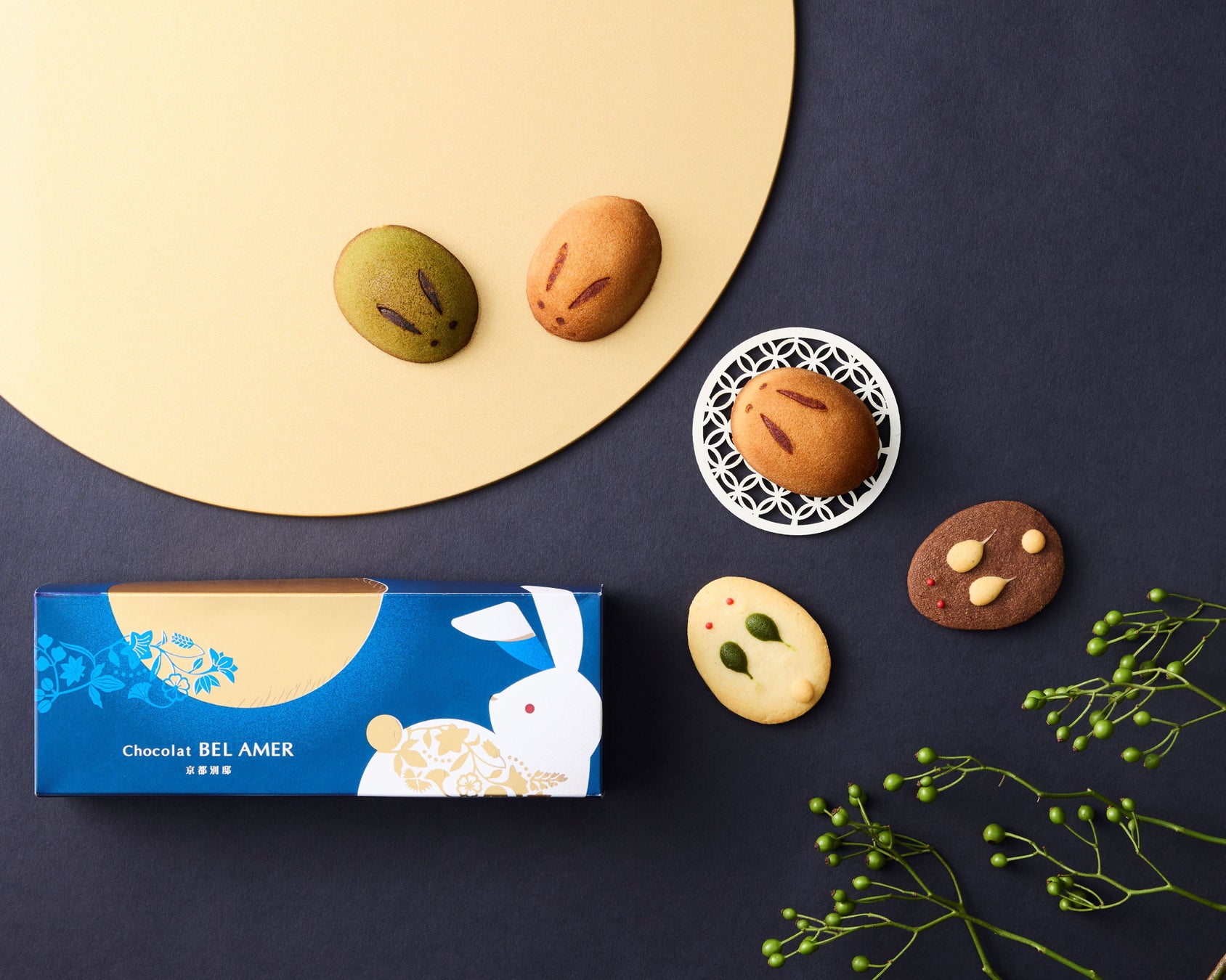 はるか昔より、月を愛でてきた京の人々。夜空に浮かぶ満月にうさぎの影を見立て、そこに幸せを思い描いてきました。そんな雅な風情から生まれた、やさしい味わいの焼き菓子。一口頬張れば、ふわりとほどける口どけとともに、心にそっと小さな幸せを届けます。