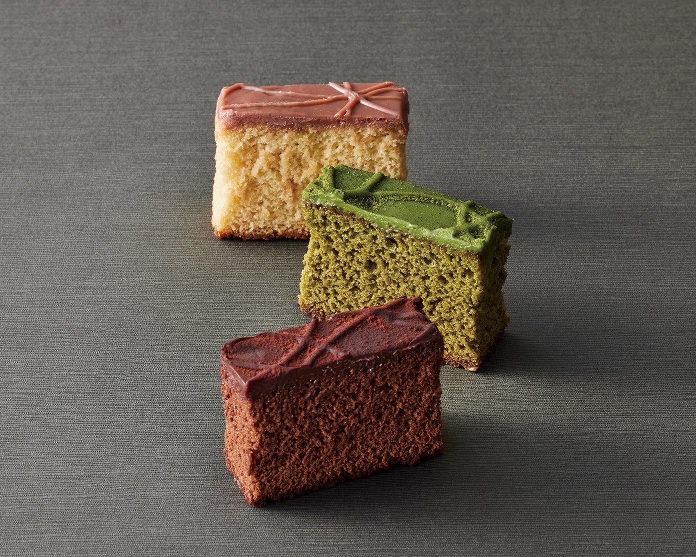 素焚糖を使用し、しっとりと焼き上げたカステラを、ショコラで丁寧にデコレーションしました。やさしい甘さとしっとりとした口あたりに、ショコラのコクが重なり、奥行きのある味わいを楽しめます。