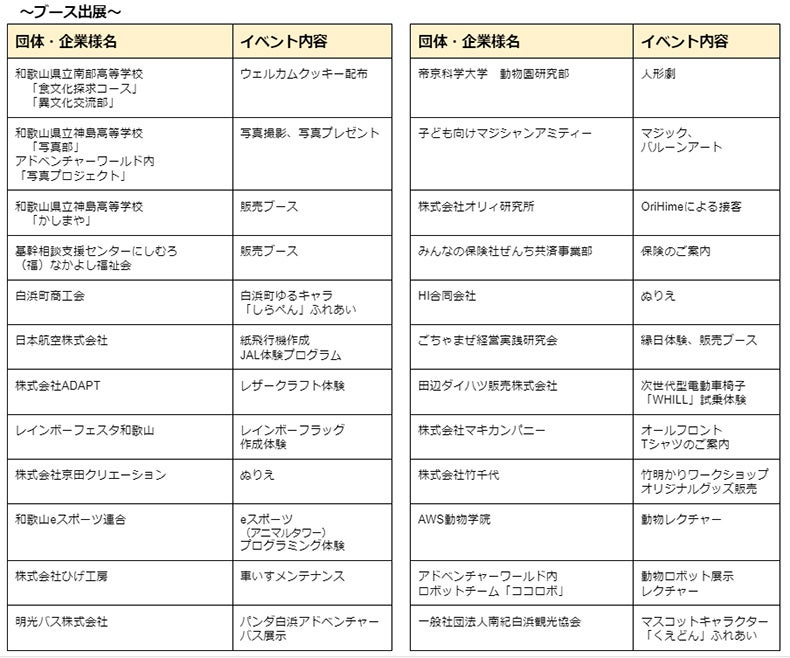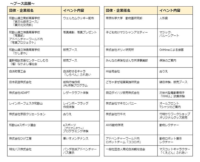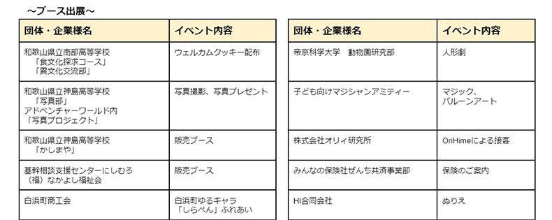 和歌⼭県、⽩浜町、⽥辺市、上富⽥町、⼀般社団法⼈南紀⽩浜観光協会、⽩浜温泉旅館協同組合、公益社団法⼈⽇本動物園⽔族館協会