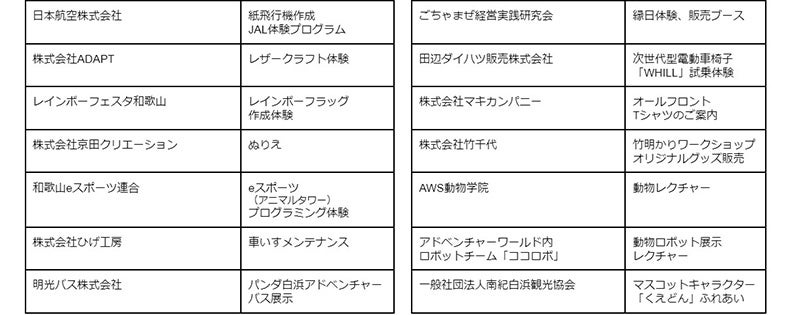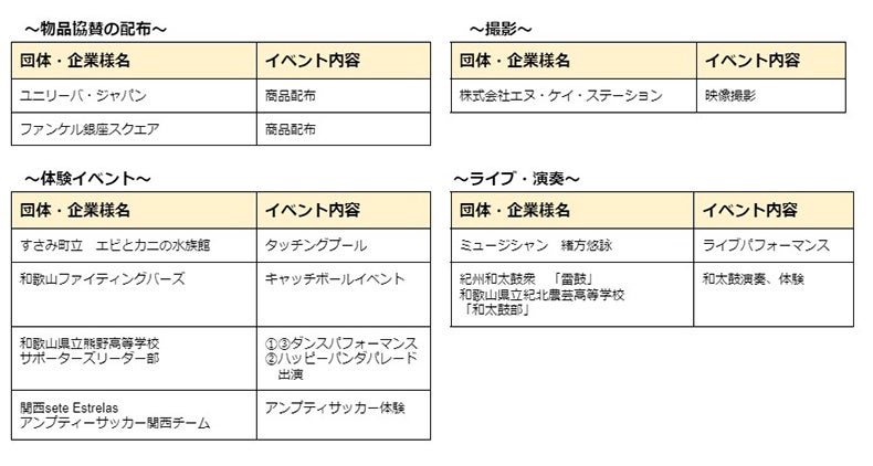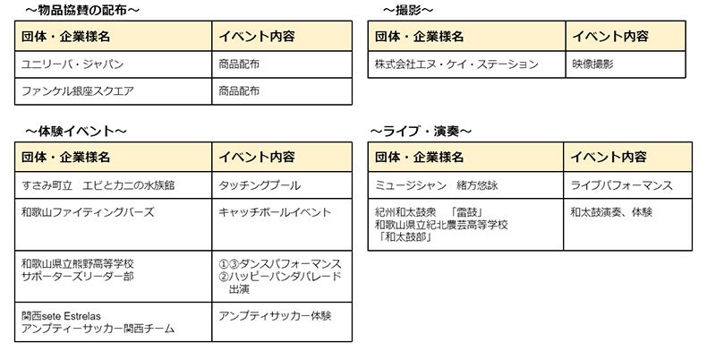 【ボランティアとしてご協力いただいた団体・企業のみなさまとイベント実施内容 (順不同)】