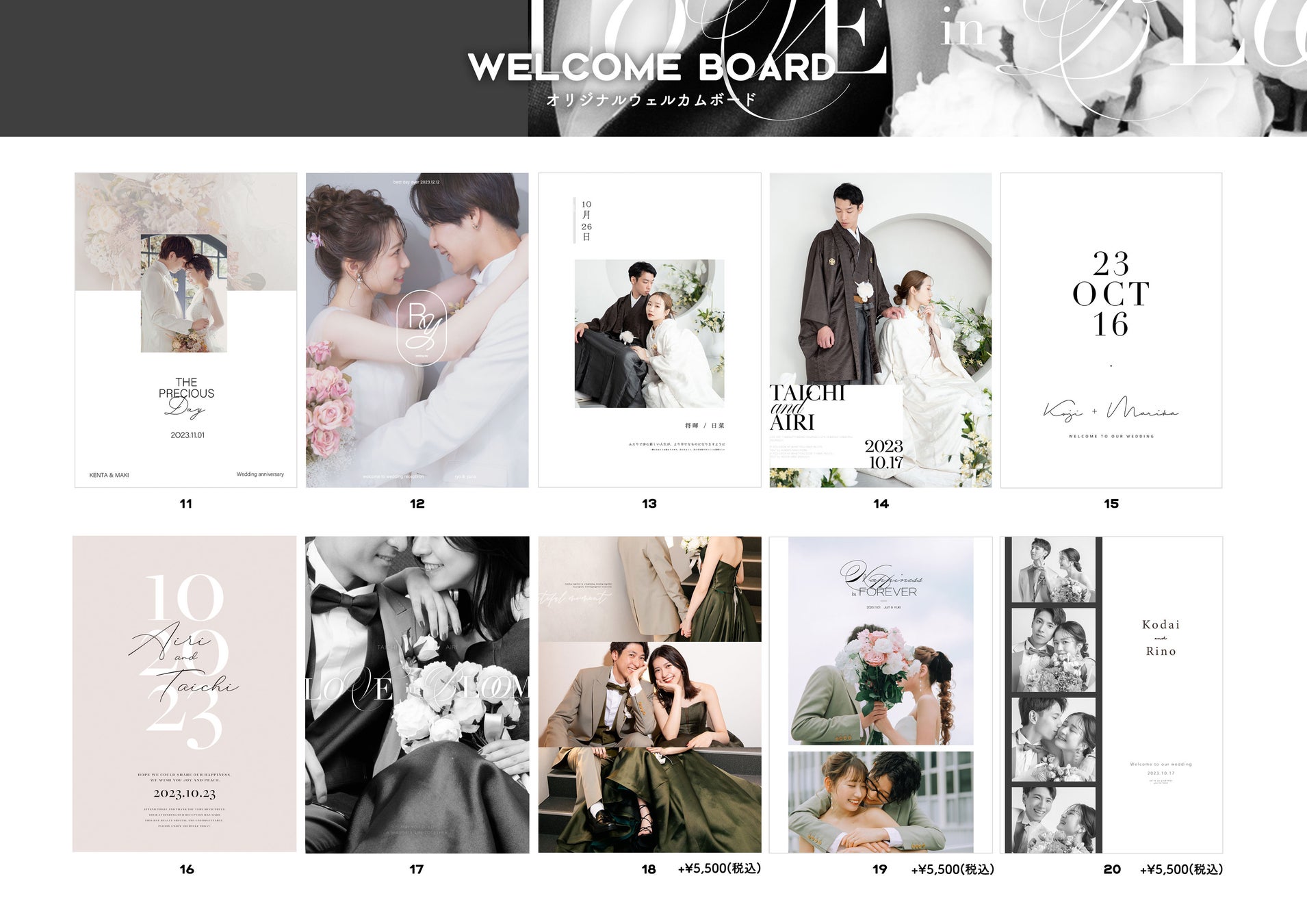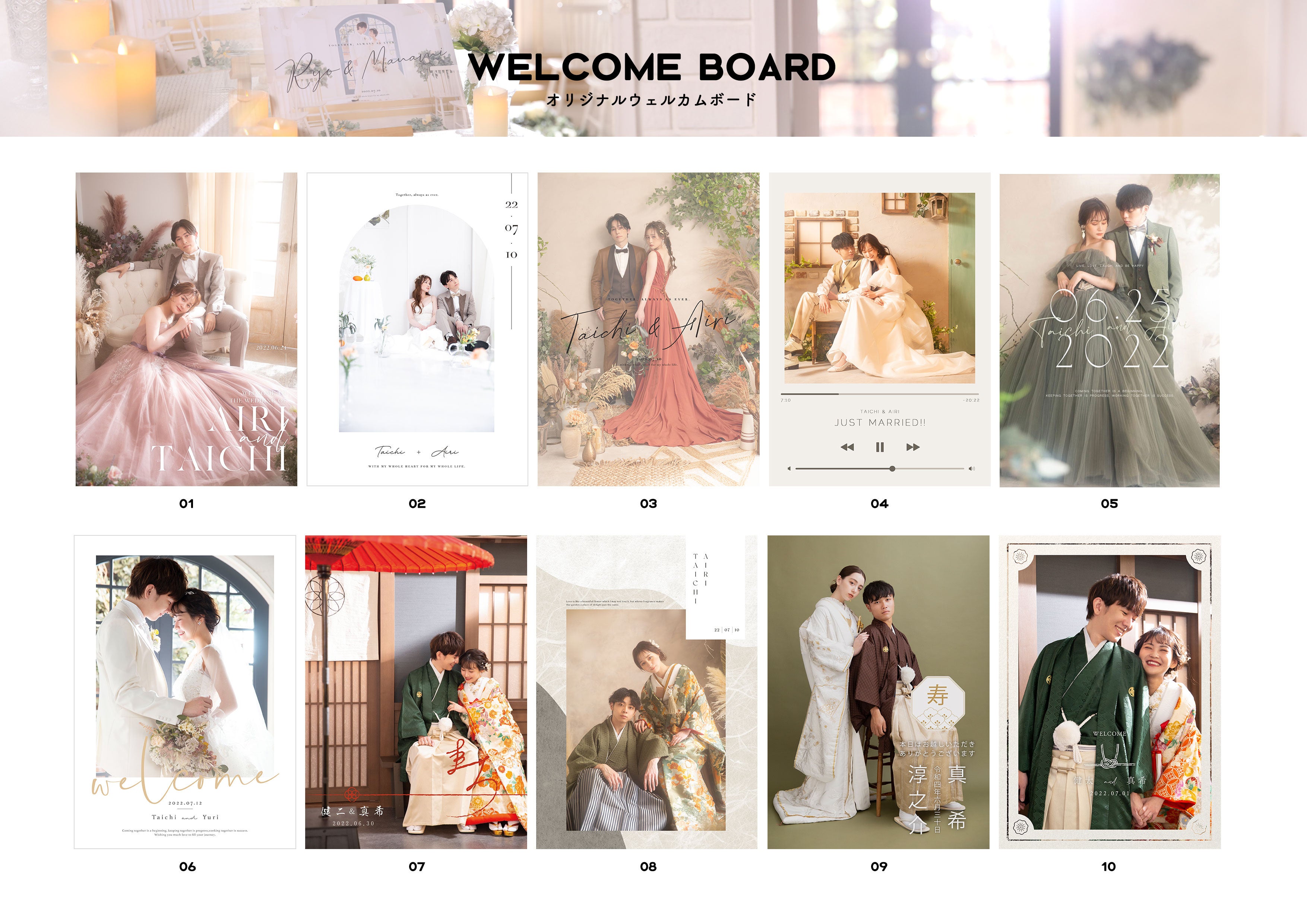 北海道主要市に展開する写真工房ぱれっと、三景スタジオでフォトウエディング撮影をされた方に提供しているウェルカムボードに新デザインが登場。デザインが合計20種類から選べるようになりました。