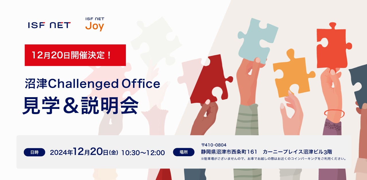 アイエスエフネット、12/20(金)10時30分より「沼津チャレンジドオフィス見学&説明会」を開催~実際の現場で障がい者雇用のポイントや課題を考える~