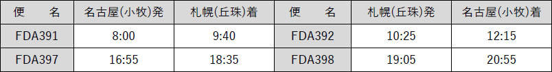 FDA 『名古屋(小牧)=札幌(丘珠)』線の路線開設について