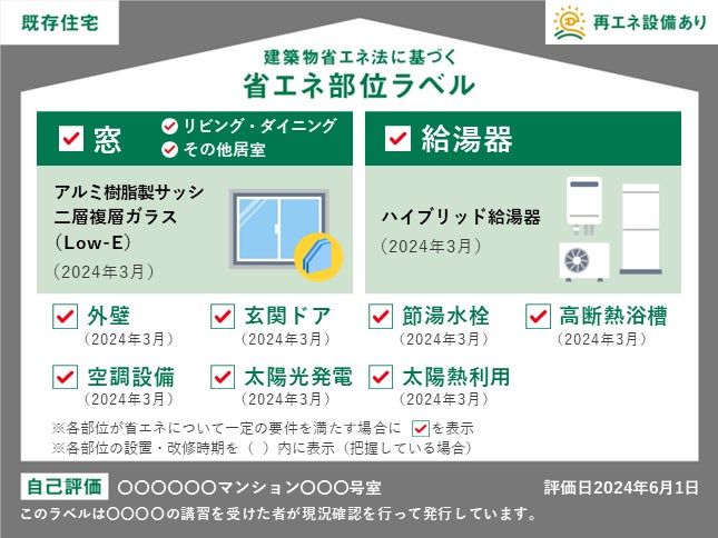 既存住宅において省エネ性能の向上に資する改修等の取組みを設備や建具ごとに記載するもので、住宅の省エネ性能が明らかではない既存住宅が対象です。2024年8月に改訂された「建築物省エネ法に基づく建築物の販売・賃貸時の省エネ性能表示制度ガイドライン」に基づき、11月より運用が開始されます。