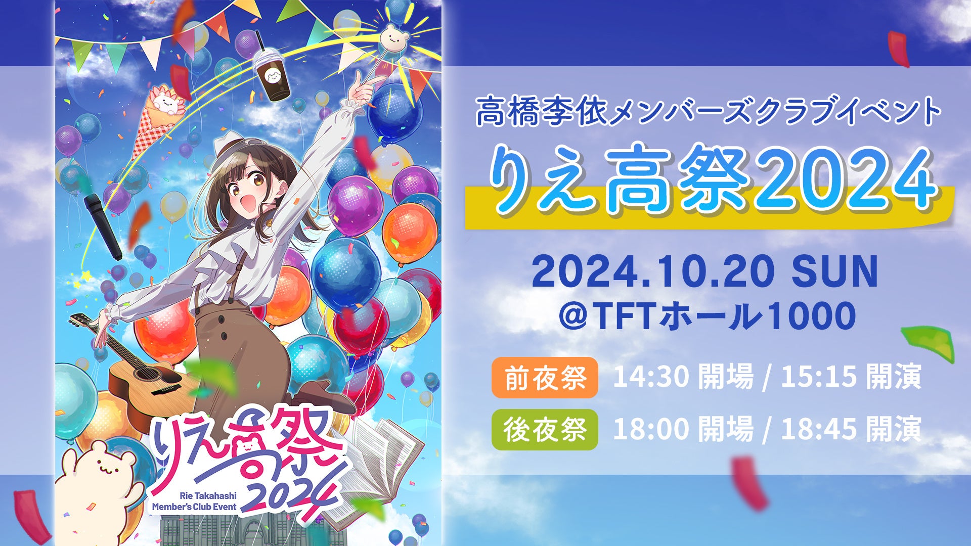 高橋李依さんメンバーズクラブ「たかは私立りえ高校」の校長である高橋を中心に、イベントのテーマである「文化祭」のチラシをイメージしたデザインとなっています。ギターやマイク・クレープなど、イベント内容を彷彿とさせるイラストにファンの期待も高まります。