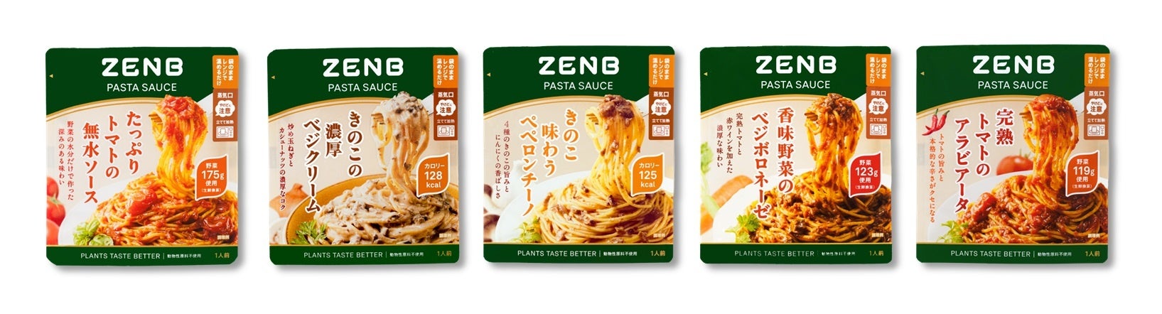 「ZENBスパゲティ」新発売に合わせ、「ZENBパスタソース」5種のパッケージもリニューアル