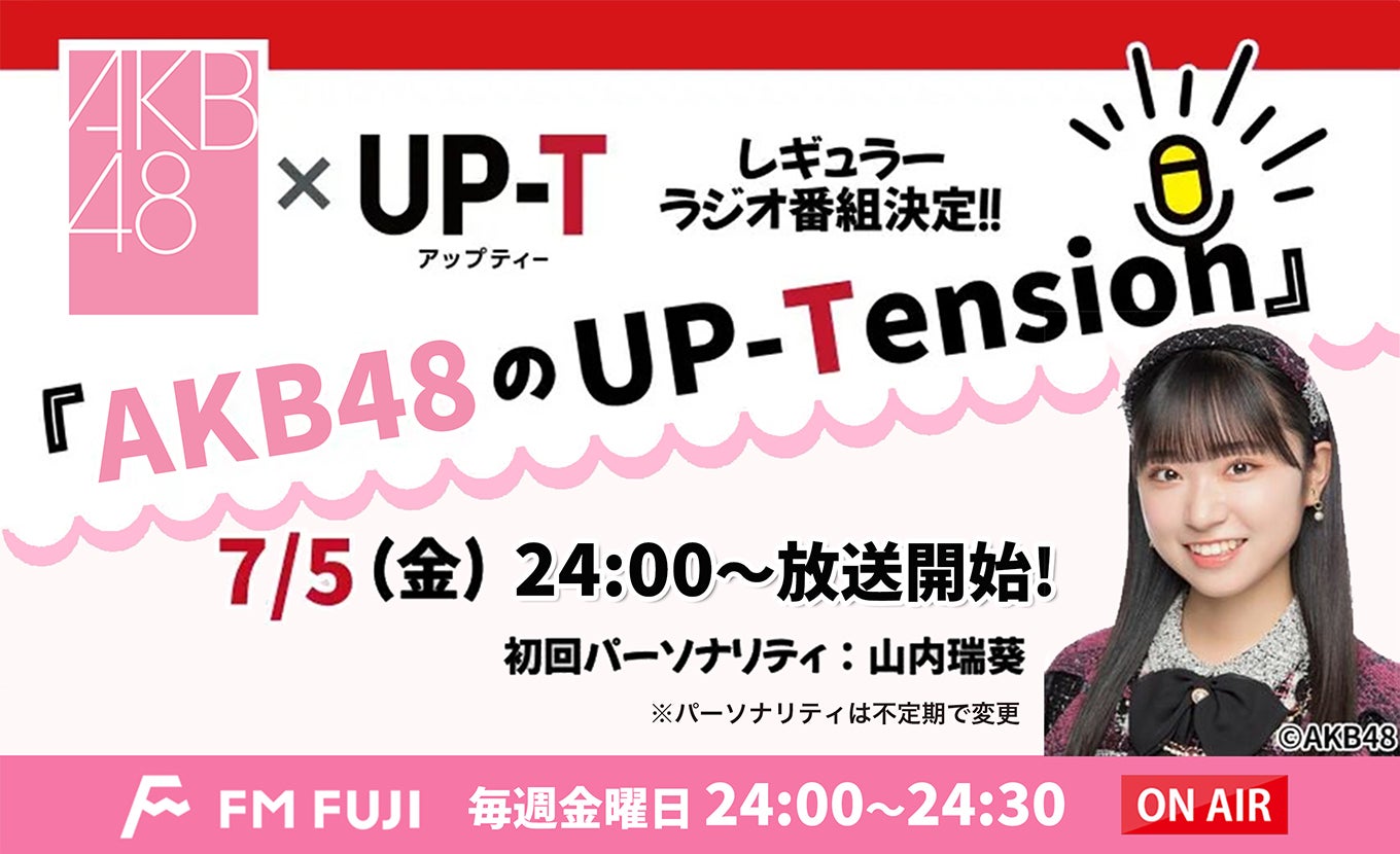 AKB48 UP-T選抜メンバーがパーソナリティーをする『AKB48 UP-Tension』が放送スタートしました。AKB48 UP-T選抜メンバーの中から毎回1人がパーソナリティーとして登場しファンのテンションが上がるようなここでしか聞けないエピソードやメンバーの一面が見れるかもしれいない番組となっております。聞き逃した方もUP-T Youtubeチャンネルでアーカイブを公開中。