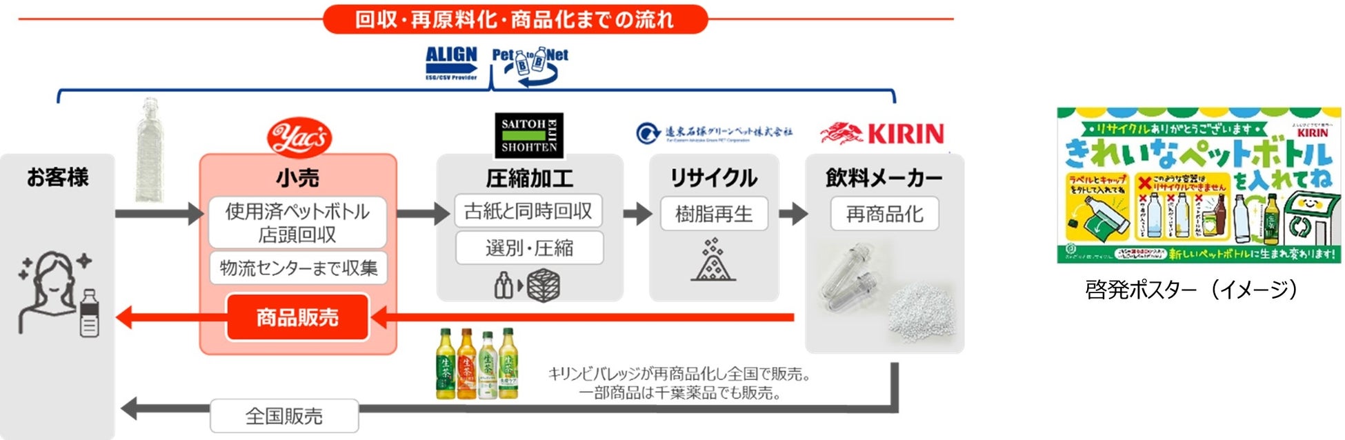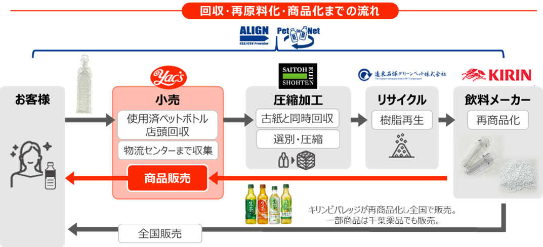 キリンビバレッジと千葉薬品が協同し、「ヤックスドラッグ」全店で使用済みペットボトルの「ボトルtoボトル」水平リサイクルを開始