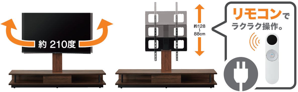 「気軽にテレビの高さや角度が変えられたらいいのに」という声から、リモコンで高さと、さらに角度も変えられる「2モーターの電動昇降テレビスタンド」を開発しました。