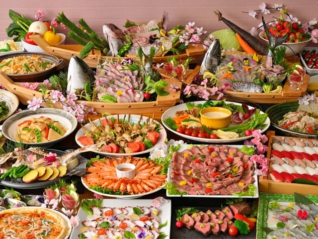 香川と瀬戸内の春を彩る旬の食材をテーマに、新鮮なお造りや地元産食材の創作メニューの他、ライブキッチンでは季節ごとの特選メニューをお客様の目の前で仕上げ出来立てをご提供します。また、食後にはロビーラウンジでのデザートタイムをお楽しみいただけます。