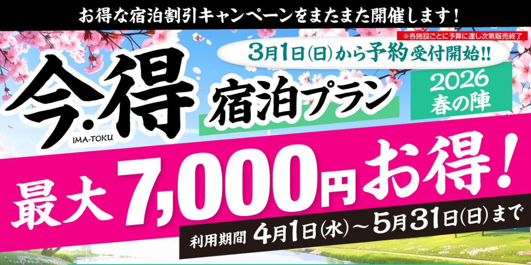 2026年4月1日(水)~2026年5月31日(日)宿泊分まで