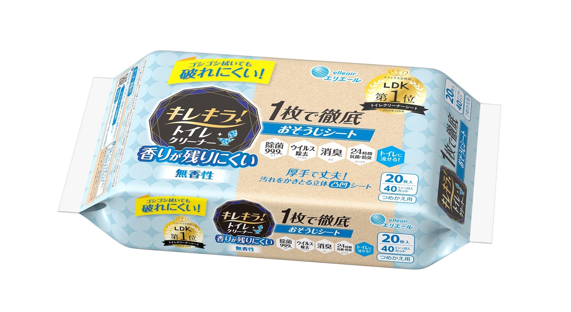 衛生用紙製品No.1ブランド※1の「エリエール」を展開する大王製紙株式会社(本社:東京都千代田区)では、拭き掃除ブランド「キレキラ®!」シリーズの「キレキラ!トイレクリーナー 1枚で徹底 おそうじシート」がこのたび、テストする女性誌『LDK』(株式会社晋遊舎)2022年12月号において、トイレクリーナーシート部門ベストバイを受賞しました。受賞ロゴマークをデザインした限定パッケージを2023年4月から順次出荷開始します。