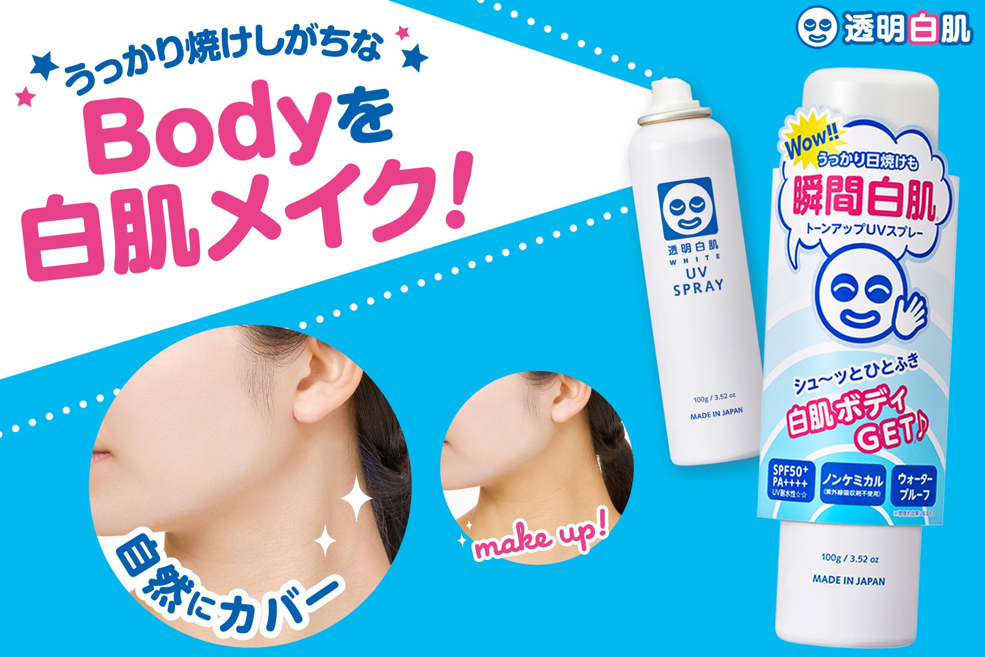 うっかり日焼けにシュ~ッとひとふき、パッと輝くボディに白肌メイク!『透明白肌 ホワイトUVスプレー』が数量限定で今年も登場!!
