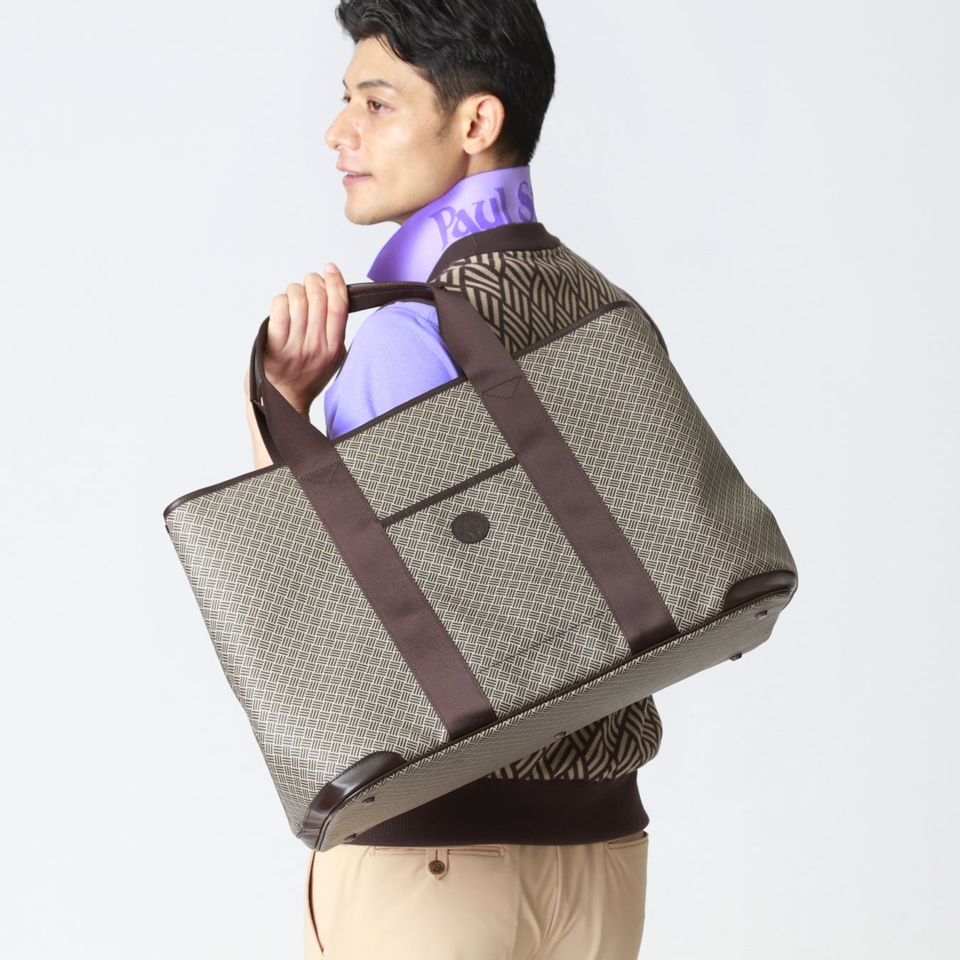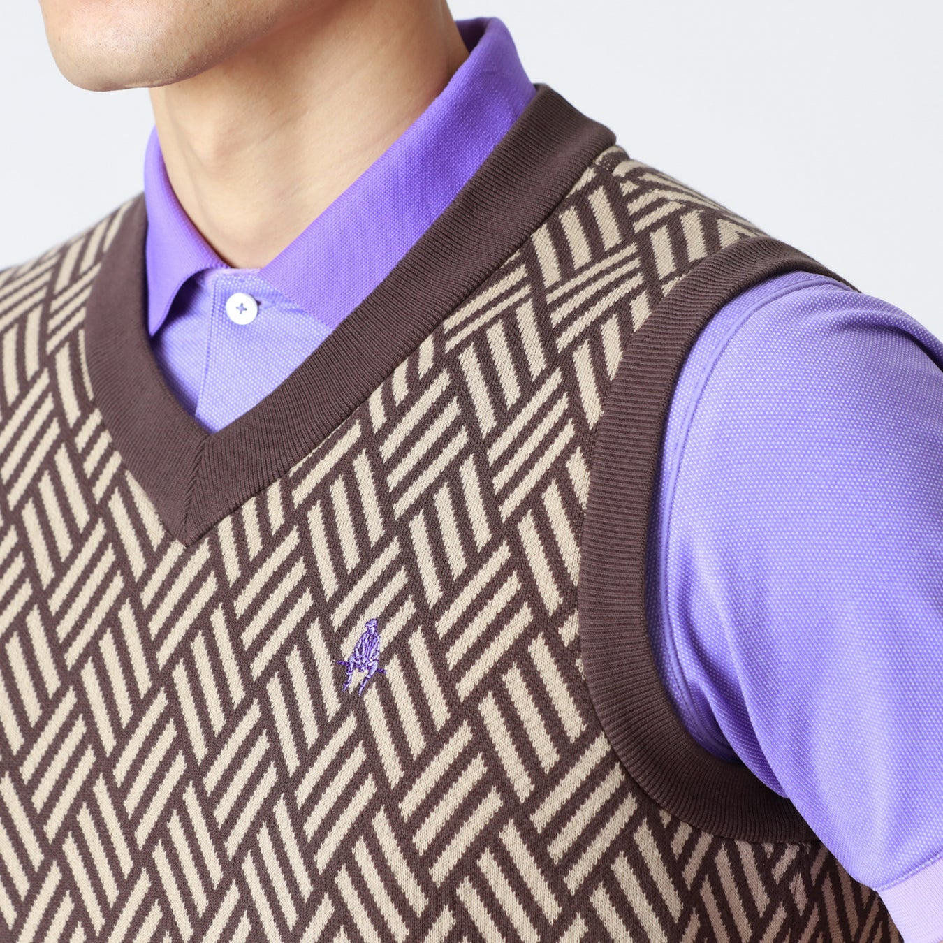 「ポール・スチュアート」のアイコンである” MAN ON THE FENCE”(マン・オン・ザ・フェンス)の図柄を編地で表現したベストや、寄木細工の柄を布地で再現した”PARQUET PATTERN”(通称:パケ柄)のポロシャツなど、ブランドを象徴するアイコンやシンボリックな柄をゴルフウェアで表現します。通常ラインとは異なり、モノトーンカラーを基調としたアイテムで構成することでモダンなテイストを加味しました。