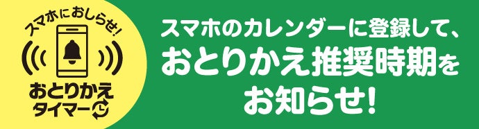 カレンダーにおとりかえ推奨時期を登録することで、スマートフォンに通知が届き、製品の取り替え忘れを防ぐサポートをします。