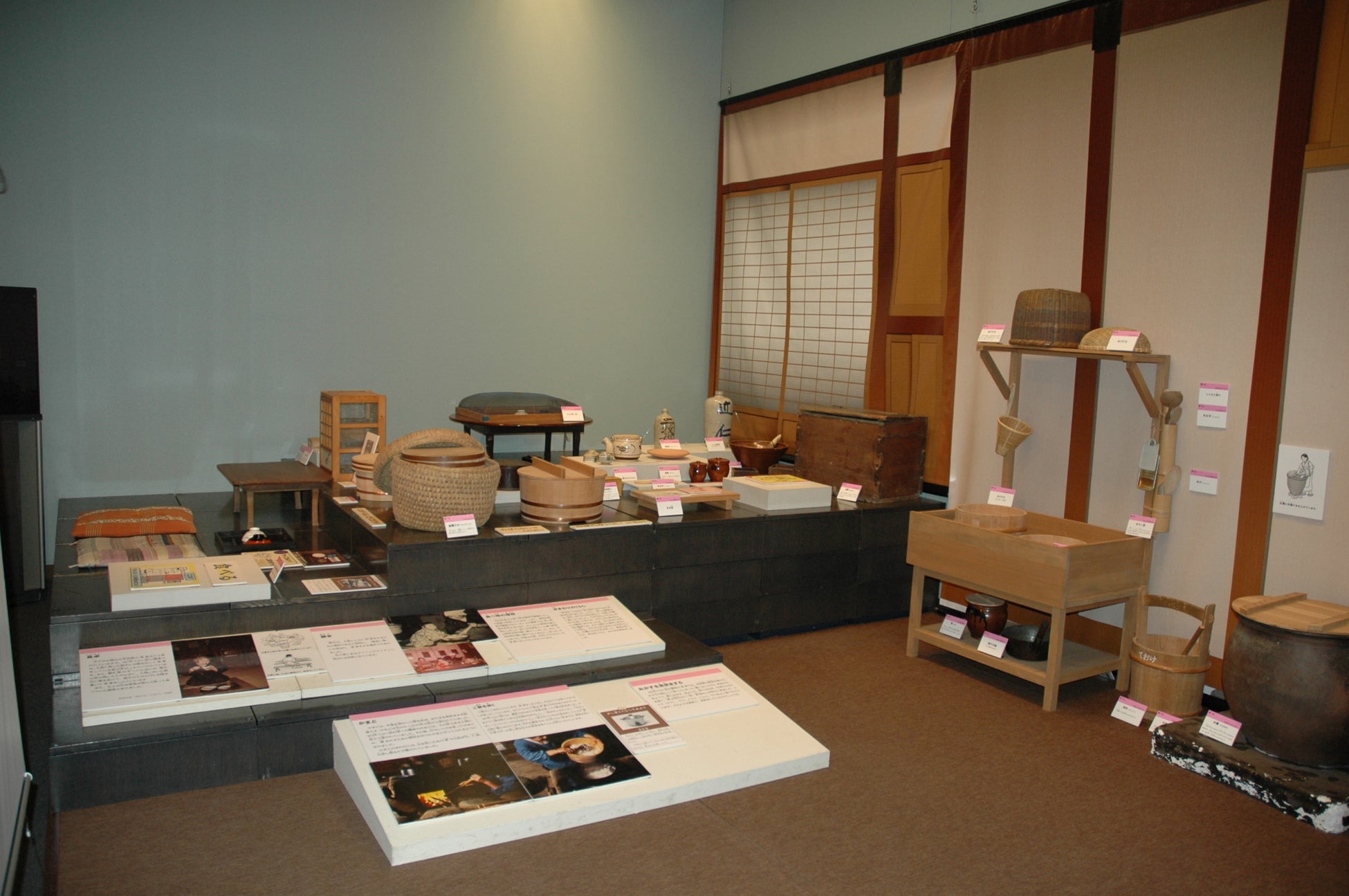 「松戸探検 100年前からのくらしのうつりかわり」は、小学校3年生社会科の学習内容に合わせた展覧会です。昔のくらしを「住まう」「食べる」「着る」「くらす」「耕す」「写真でみる松戸のうつりかわり」の6つのテーマに分け、約170点の資料を展示します。