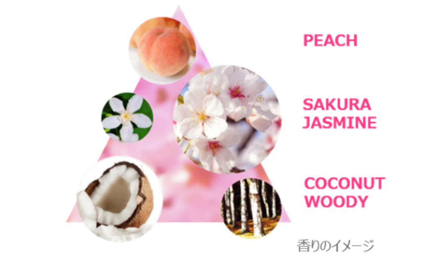 フレッシュな桜の香りをピーチの香りやココナッでふわっと包み込んだ春らしい香り