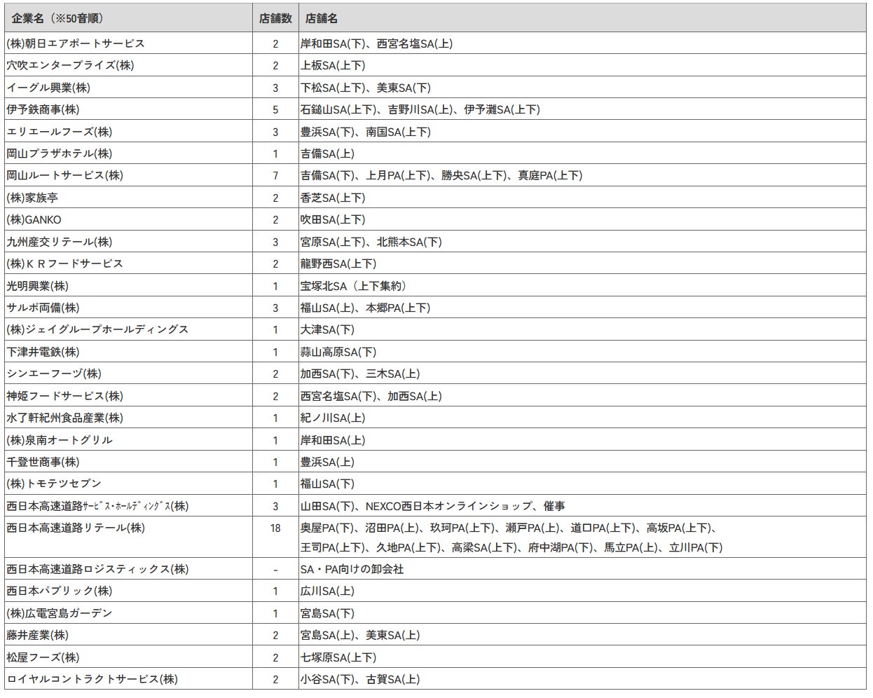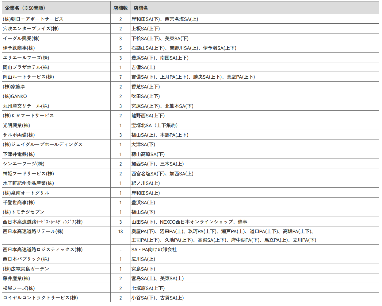 買い手:SA・PAの商業施設を運営するテナント事業者等 29 社