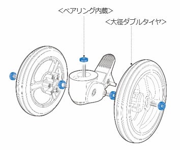 ■進化したダブルタイヤで押しやすく、段差乗り越えもぐっと良くなりました(※1)