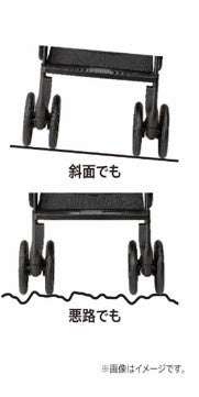 地面との接地点が多く、斜面や悪路でも安定して押すことができます。