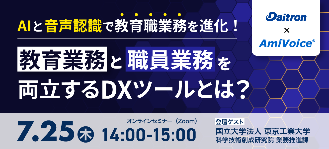 【オンラインセミナー】AIと音声認識で教育職業務を進化!教育業務と職員業務を両立するDXツールとは?【7月25日(木)開催】