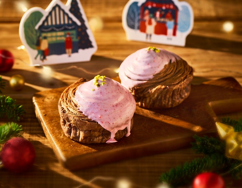 ほんのりカカオが香るデニッシュ生地に、ストロベリー風味のデコレーション。