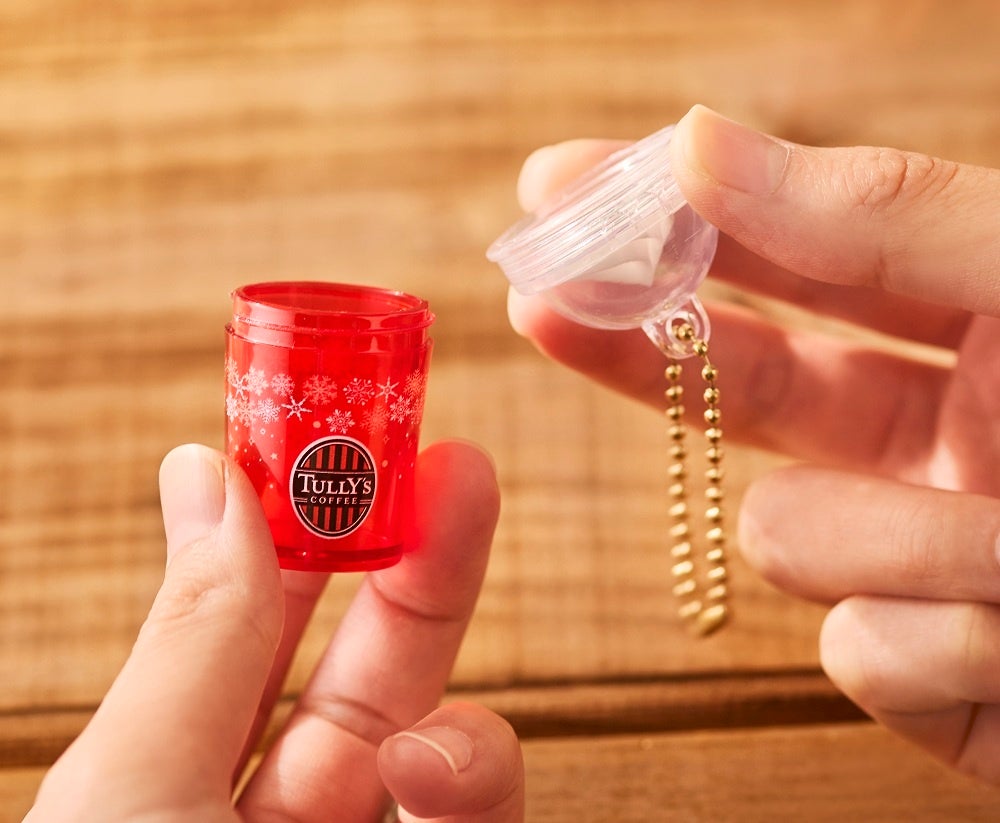タリーズのドリンクをイメージした手のひらサイズのキーチェーン。蓋を外すと、中に小物を入れることができます。
