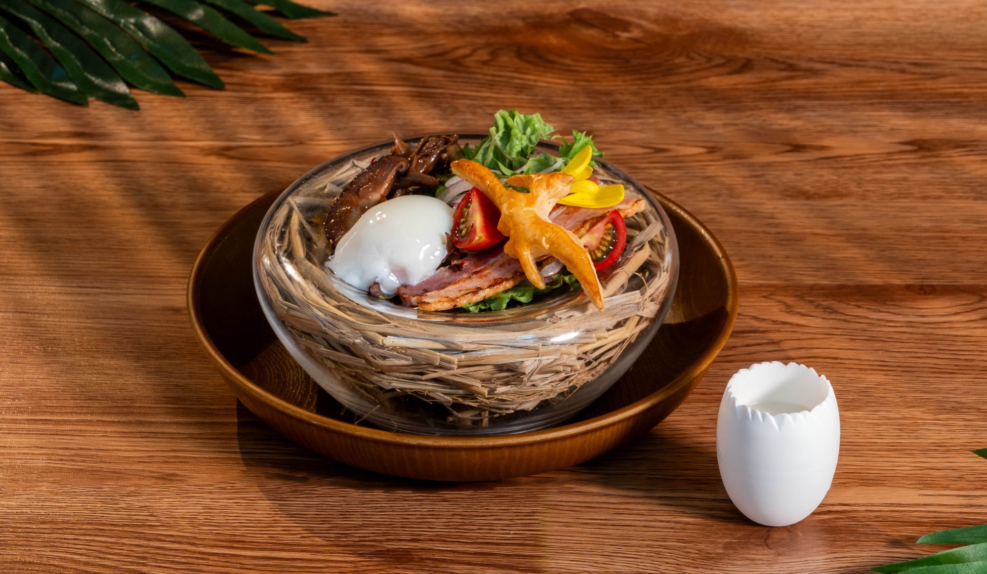 恐竜のたまごを味わうかのようなユニークなサラダ。