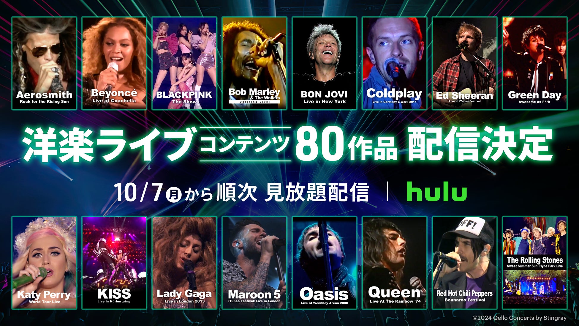 動画配信サービスHuluを運営するHJホールディングス株式会社(本社:東京都港区、代表取締役社長:髙谷 和男、以下Hulu)は、音楽ライブ・コンサートなどの公式動画をブラウザやスマホにて視聴できるストリーミングサービス Qello Japan(クェロ・ジャパン)と包括的ライセンス契約を締結いたしました。これにより、2024年10月7日(月)から80作品を順次 見放題配信いたします。