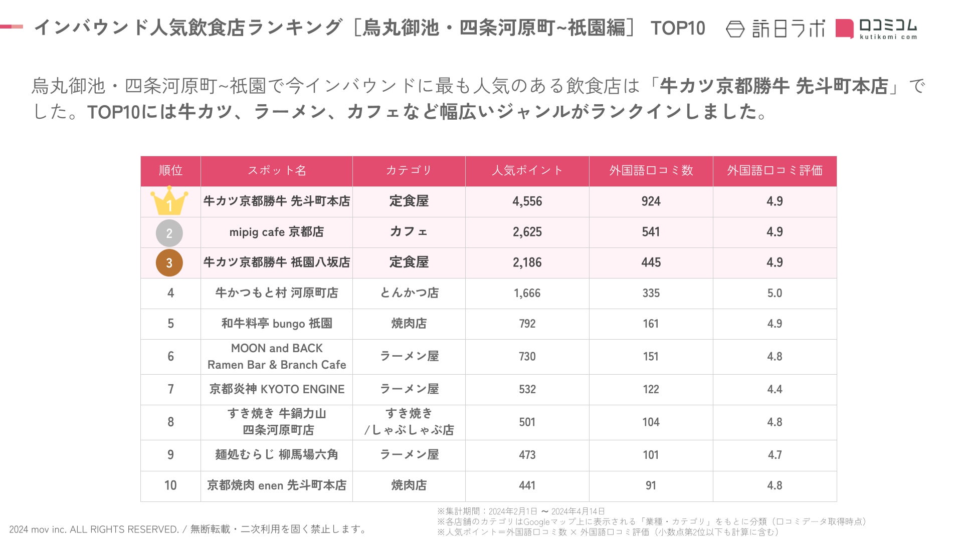 【独自調査】外国人に人気の飲食店ランキング【京都・烏丸四条編】1位は「牛カツ京都勝牛 先斗町本店」:インバウンド人気飲食店ランキング #インバウンドMEO