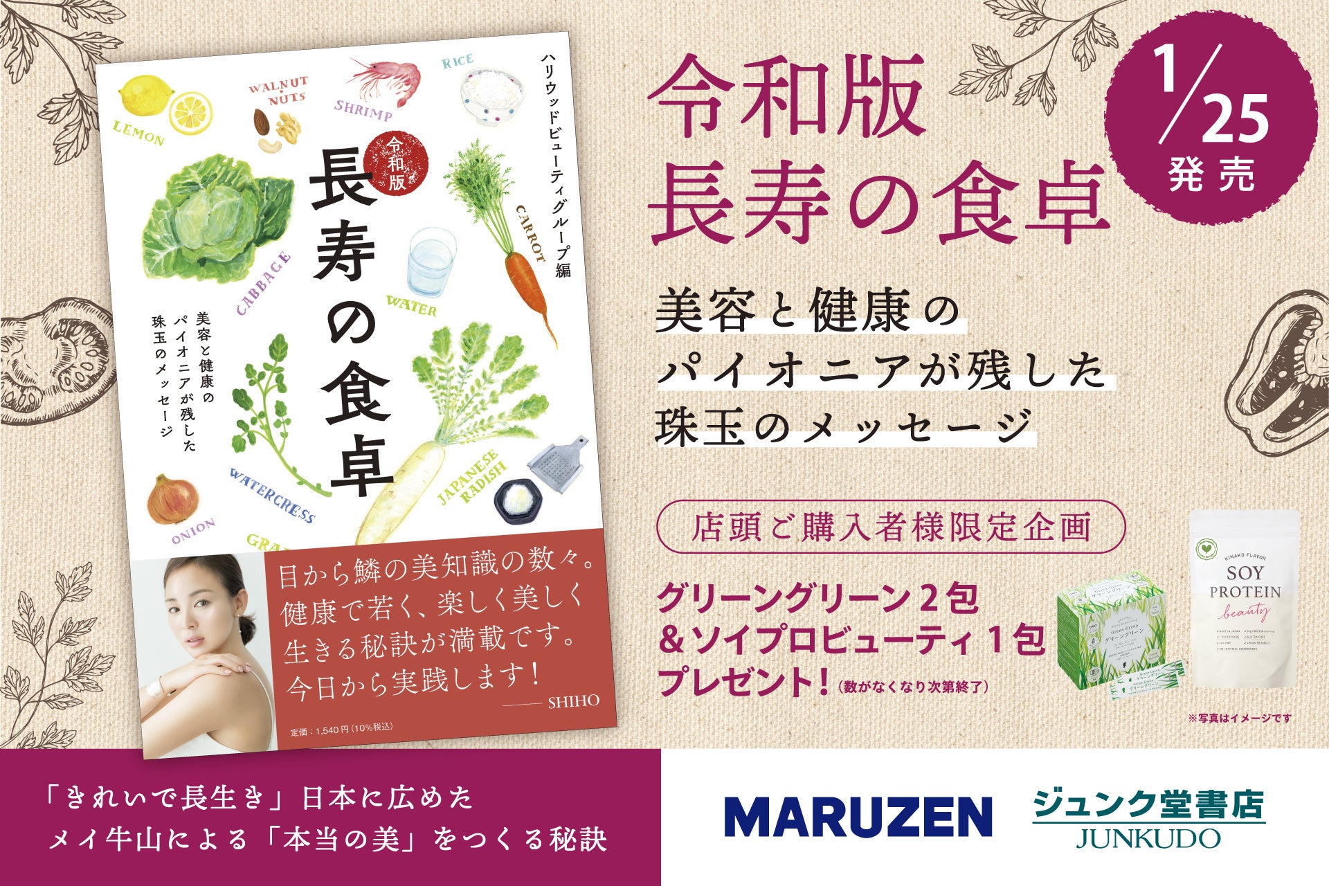 丸善 日本橋店、丸善 ラゾーナ川崎店、ジュンク堂書店 池袋本店限定!『令和版長寿の食卓』購入で、その場で健康食品プレゼント(数量限定)