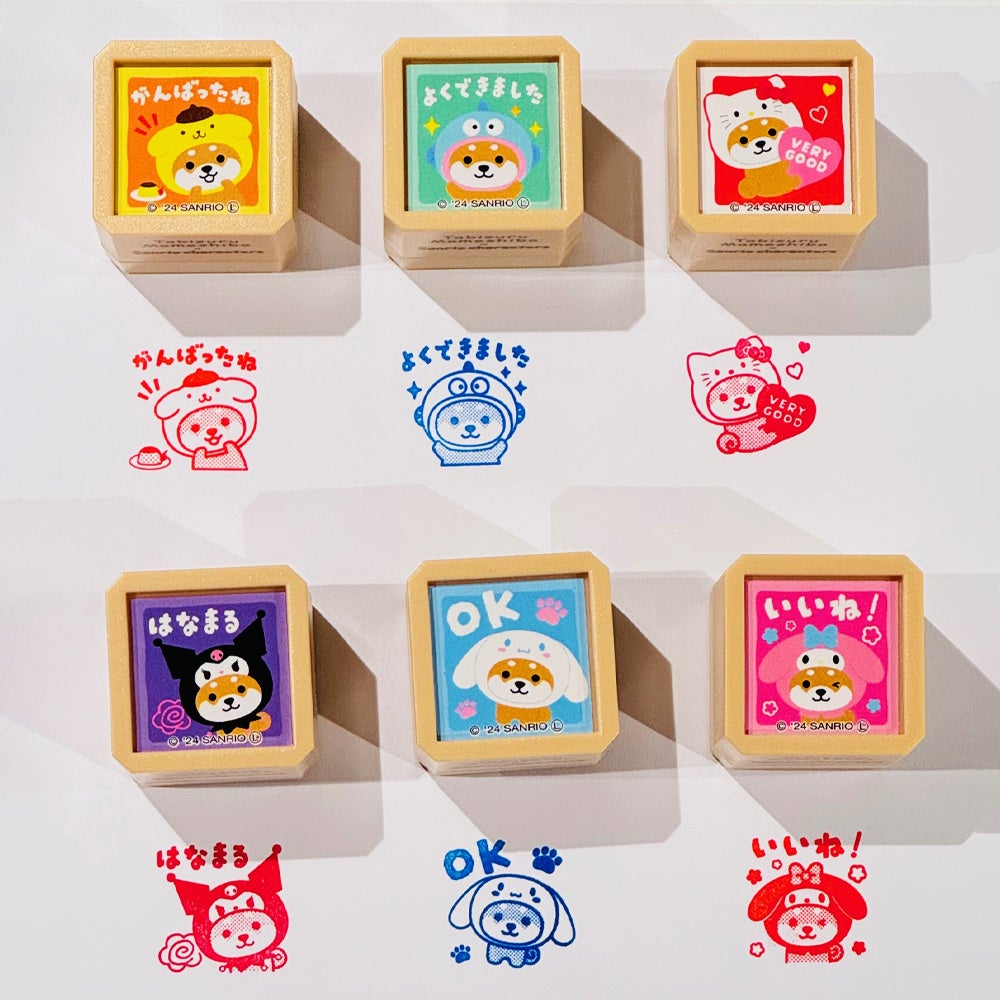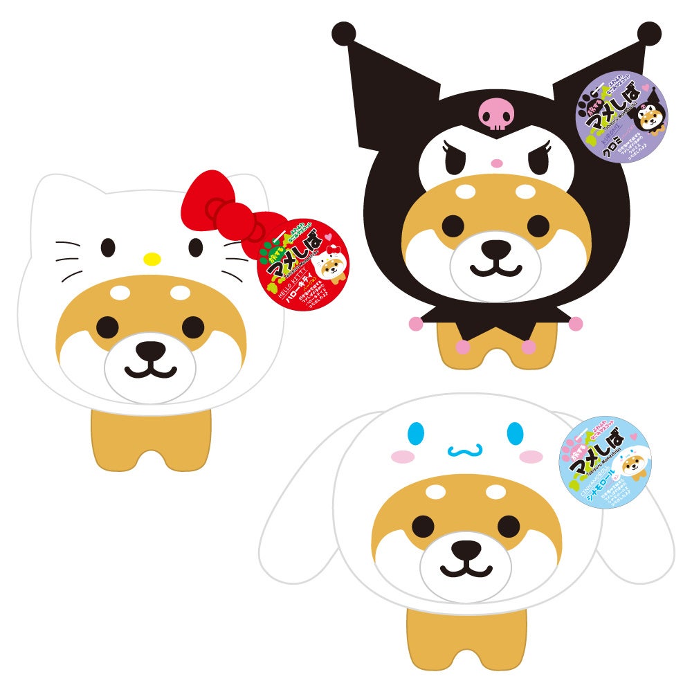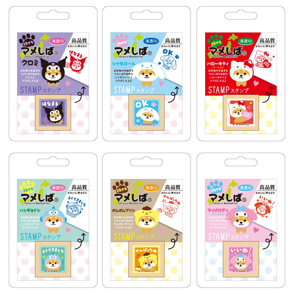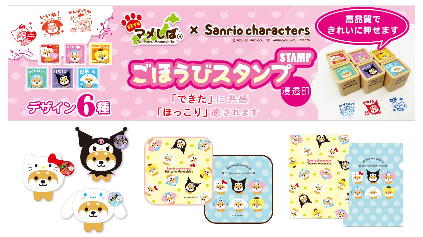 日本各地を旅するご当地犬「旅するマメしば」×「サンリオキャラクターズ」の新商品『ごほうびスタンプ』『ぬいぐるみ和みマスコット』『ミニハンカチ』『クリアファイル』が新登場!